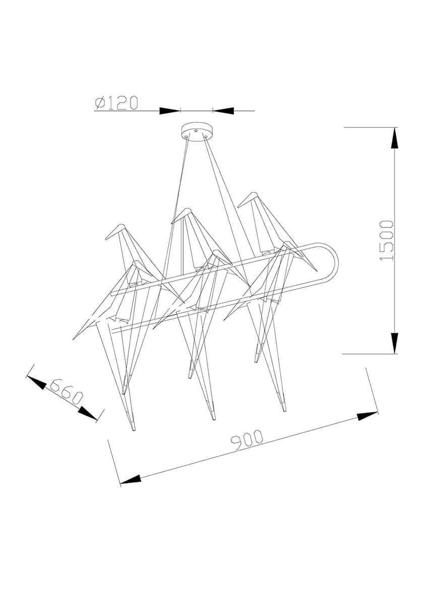 Для светильника необходима светодиодных ламп 216 W. Габариты изделия: высота – 800 мм, диаметр – 900 мм.