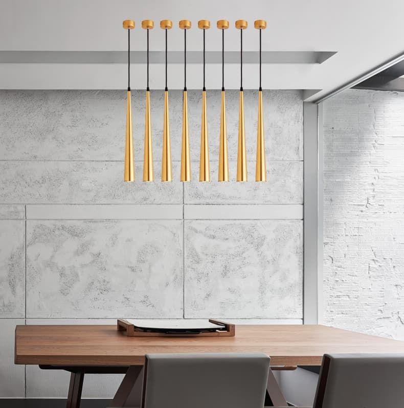 Подвесной светодиодный светильник Moderli Epoch V2353-PL от Китайского бренда из коллекции Epoch предназначен для установки на потолок в кафе и ресторанах в современном стиле. Cветильник в форме с алюмииневой арматурой залотого цвета и залотого цвета плафонами из алюминия предназначен для освещения 4 м2.