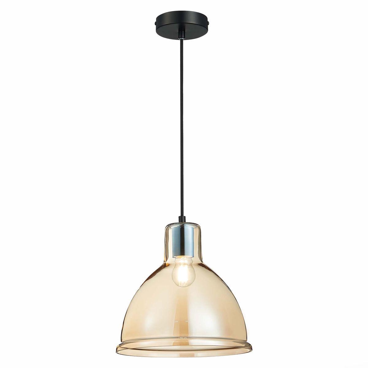 Подвесной светильник Evoluce Bacchi SLE114723-01 от Китайского бренда из коллекции Bacchi предназначен для установки на потолок в кухне в стиле модерн. Cветильник в форме с металлической арматурой черного цвета и янтарного цвета плафонами из стекла предназначен для освещения 3 м2.
