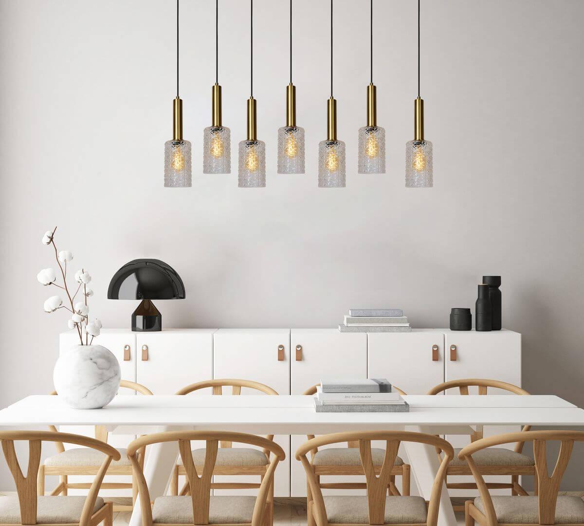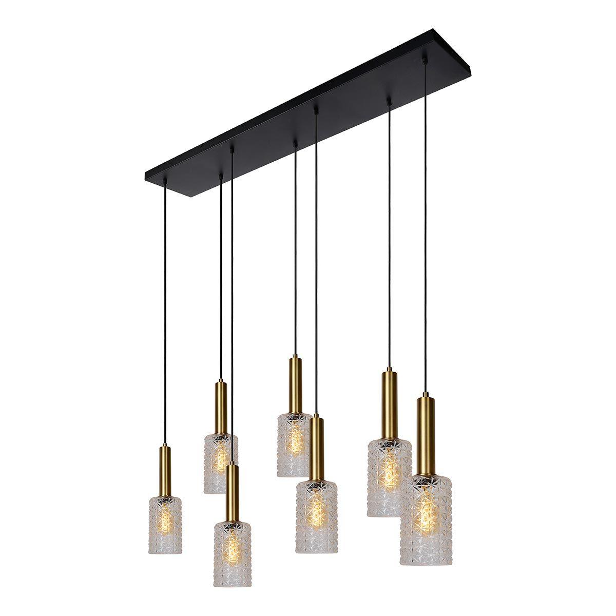 Подвесной светильник Lucide Coralie 45498/07/60 от Китайского бренда из коллекции Coralie предназначен для установки на потолок в кухне в стиле модерн. Cветильник в форме с металлической арматурой черного цвета и прозрачного цвета плафонами из стекла предназначен для освещения м2.