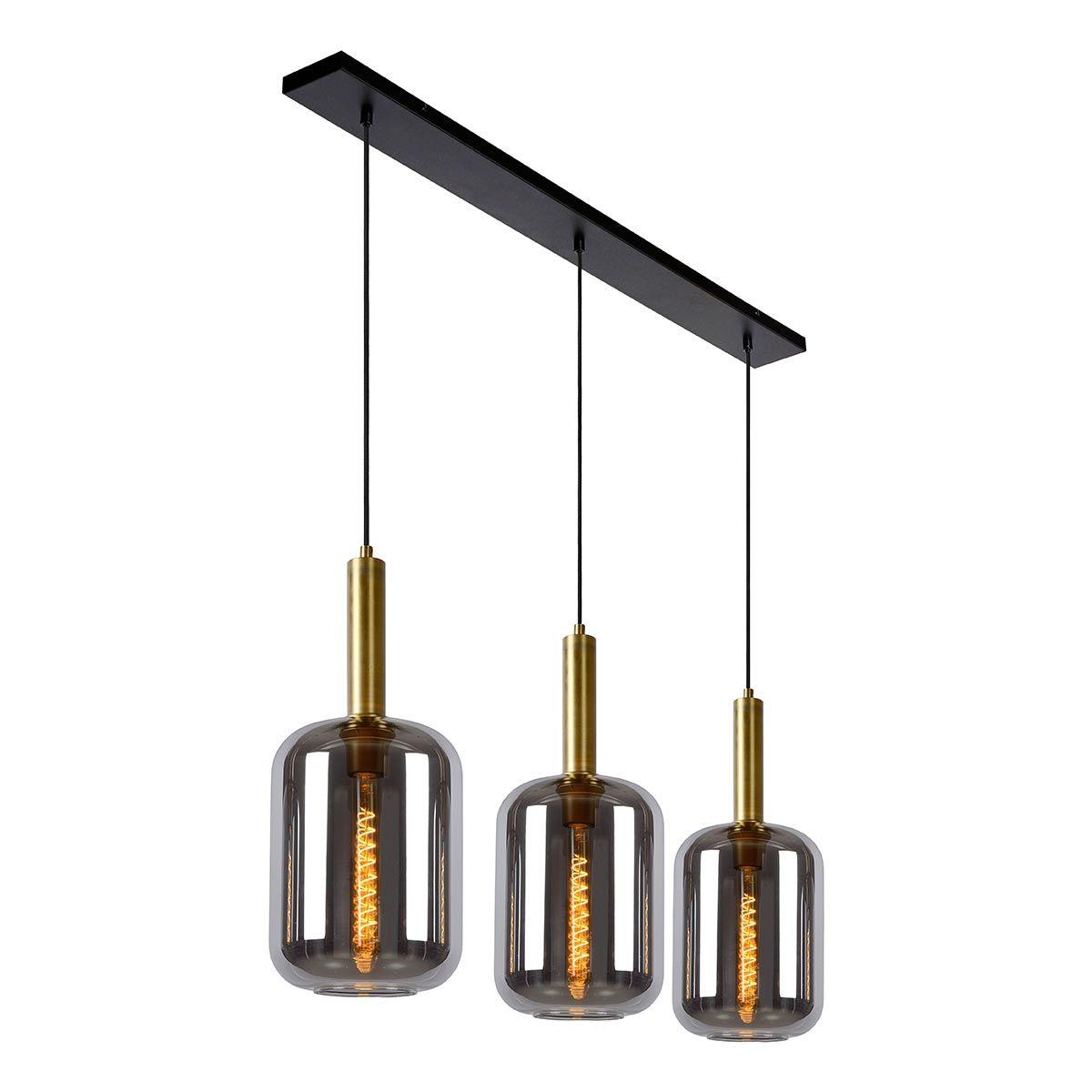 Подвесной светильник Lucide Joanet 45494/03/65 от Китайского бренда из коллекции Joanet предназначен для установки на потолок в кухне в стиле модерн. Cветильник в форме с металлической арматурой черного цвета и дымчатого цвета плафонами из стекла предназначен для освещения м2.