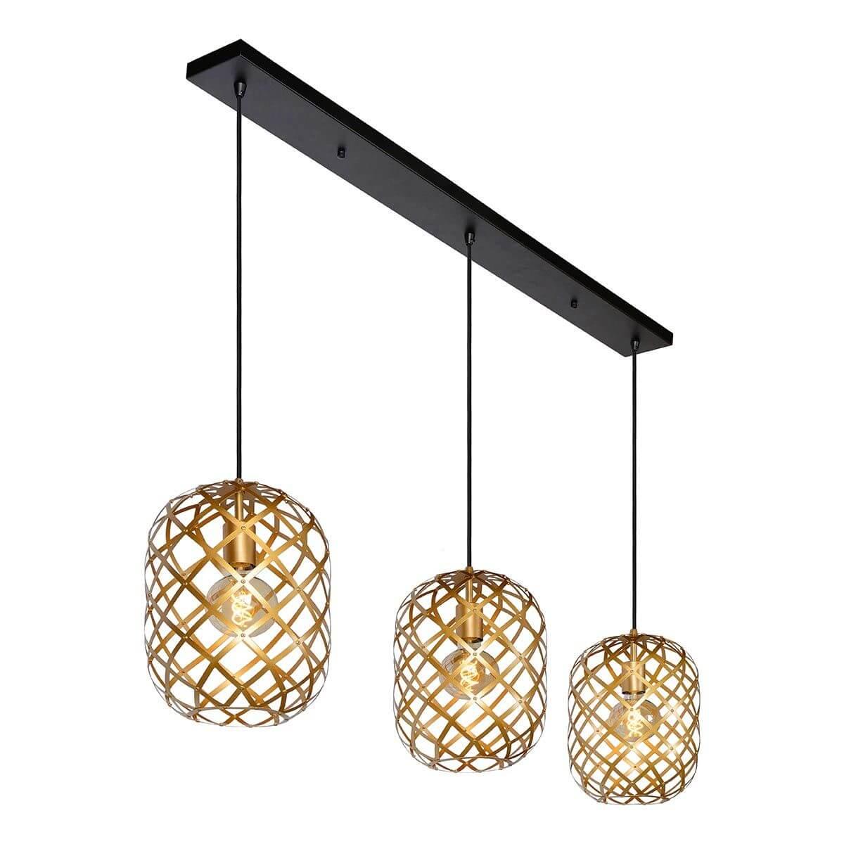 Подвесной светильник Lucide Wolfram 21417/03/02 от Китайского бренда из коллекции Wolfram предназначен для установки на потолок в кухне в современном стиле. Cветильник в форме с металлической арматурой черного цвета и залотого цвета плафонами из металла предназначен для освещения м2.