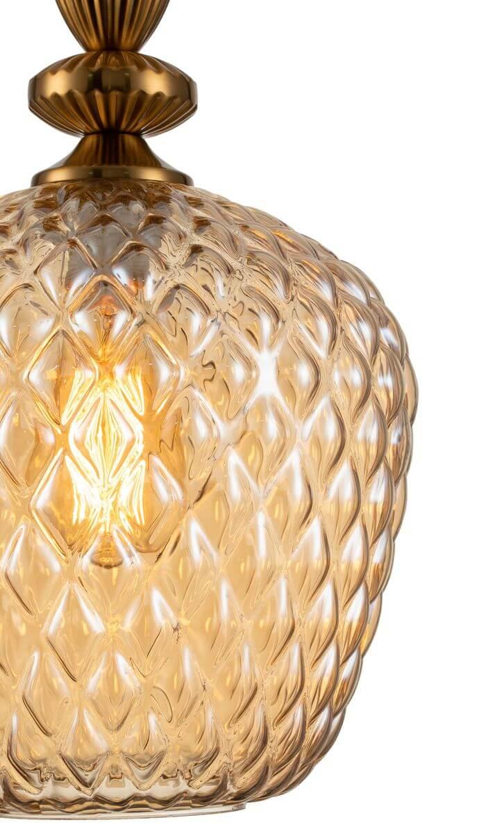 Подвесной светильник Indigo Annata 11010/1P Amber V000129 от Китайского бренда из коллекции Annata предназначен для установки на потолок в кухне в классиком стиле. Cветильник в форме с металлической арматурой цвета латуни и янтарного цвета плафонами из стекла предназначен для освещения 3 м2.