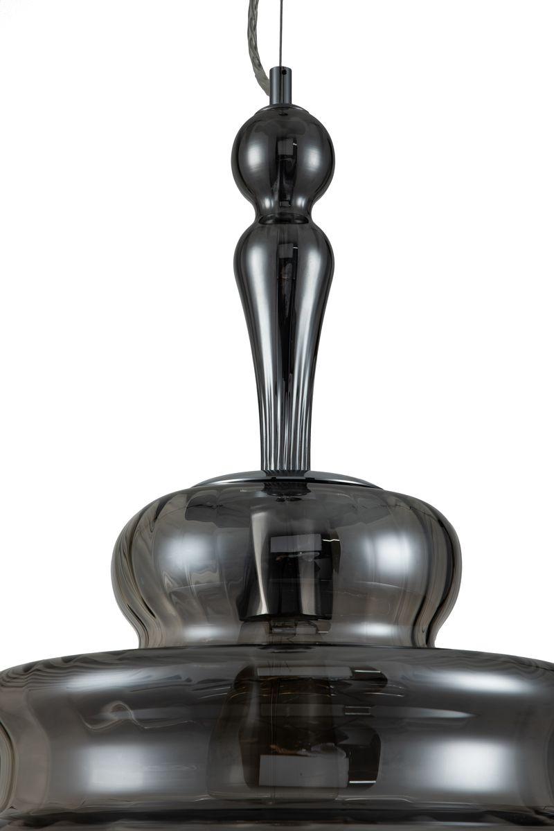 Подвесной светильник Indigo Frutto 11009/1P Smoke V000125 от Китайского бренда из коллекции Frutto предназначен для установки на потолок в кухне в стиле кантри. Cветильник в форме с металлической арматурой цвет хрома и дымчатого цвета плафонами из стекла предназначен для освещения 3 м2.