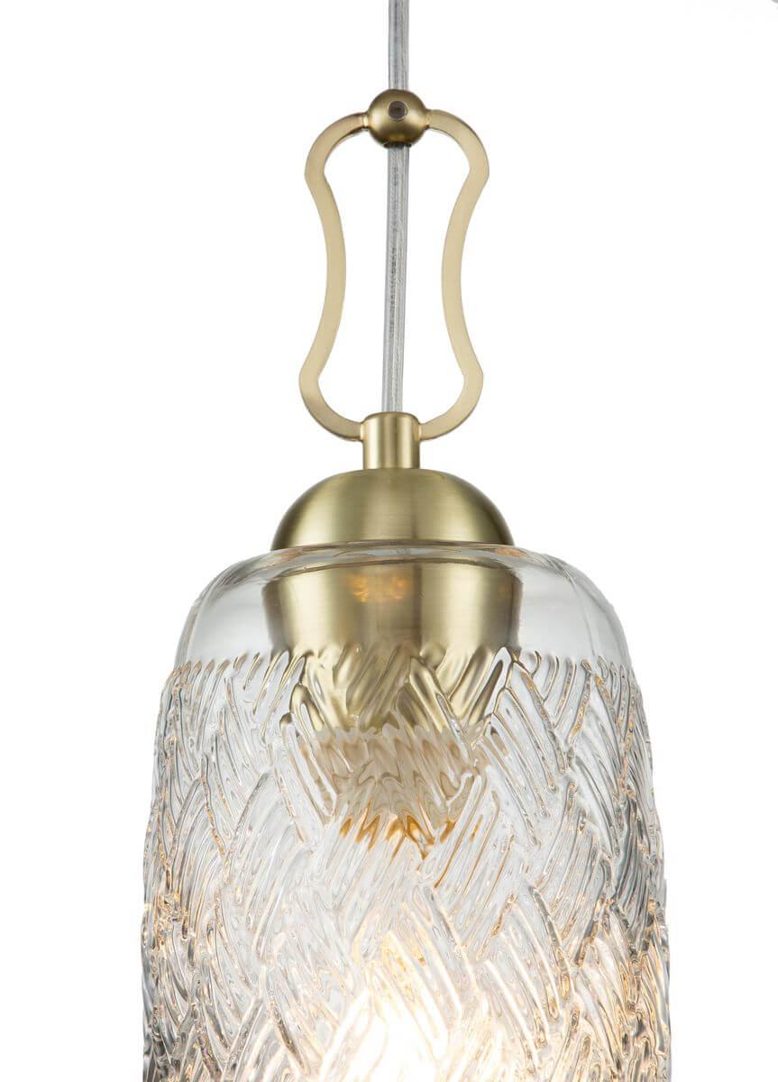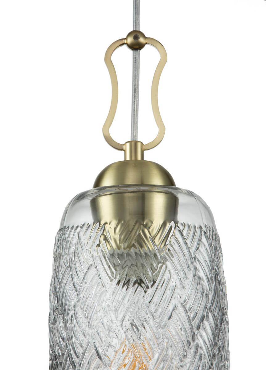 Подвесной светильник Indigo Pizzo 13007/B/1P Gold V000289 от Китайского бренда из коллекции Pizzo предназначен для установки на потолок в кухне в ретро стиле. Cветильник в форме с металлической арматурой залотого цвета и прозрачного цвета плафонами из стекла предназначен для освещения 3 м2.