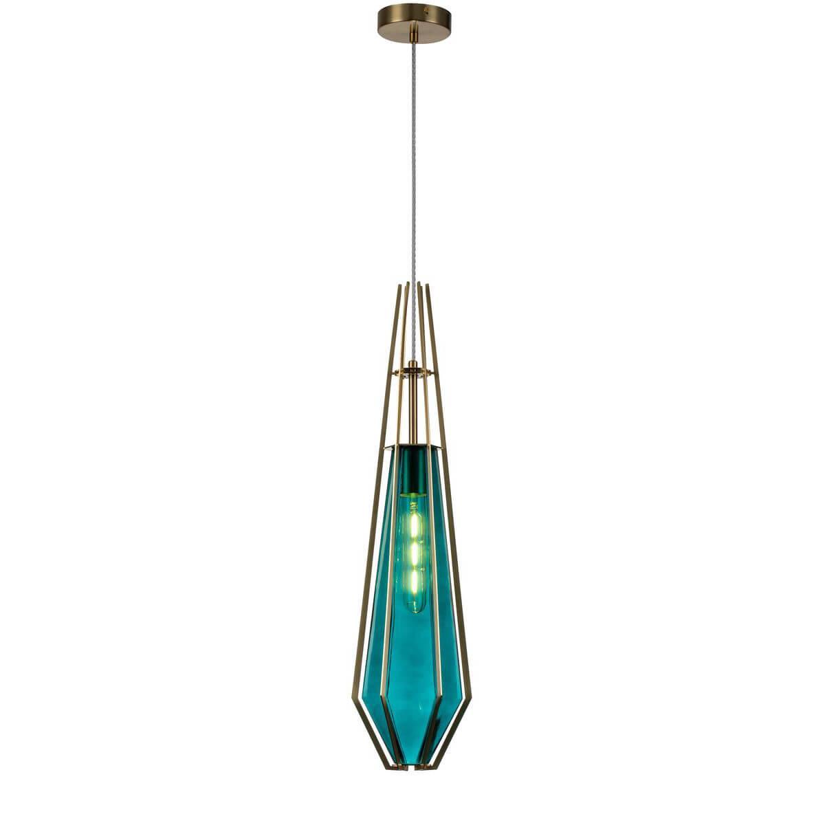 Подвесной светильник Indigo Vista 11012/1P Blue V000136 от Китайского бренда из коллекции Vista предназначен для установки на потолок в спальни в скандинавском стиле. Cветильник в форме с металлической арматурой залотого цвета и бирюзового цвета плафонами из стекла предназначен для освещения 3 м2.