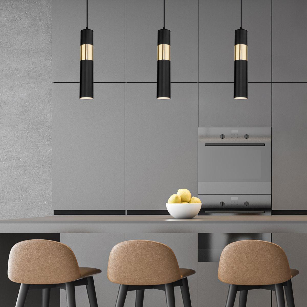 Подвесной светильник Eurosvet Viero 50097/1 черный/золото от Китайского бренда из коллекции Viero предназначен для установки на потолок в кухне в современном стиле. Cветильник в форме с металлической арматурой черного цвета и черного цвета плафонами из металла предназначен для освещения 2 м2.