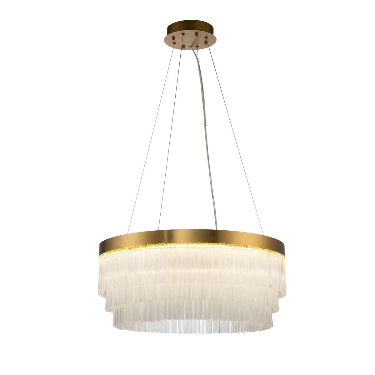 Подвесной светодиодный светильник Moderli Briol V6080-PL от бренда из коллекции Briol предназначен для установки на потолок в гостиной в стиле модерн. Cветильник в форме с стальной арматурой цвета латуни и прозрачного цвета плафонами из стекла предназначен для освещения м2.
