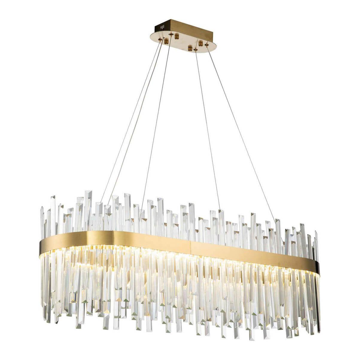 Подвесной светодиодный светильник Moderli Citro V9090-PL от Китайского бренда из коллекции Citro предназначен для установки на потолок в гостиной в стиле модерн. Cветильник в форме с стальной арматурой цвета латуни и прозрачного цвета плафонами из хрусталя предназначен для освещения м2.