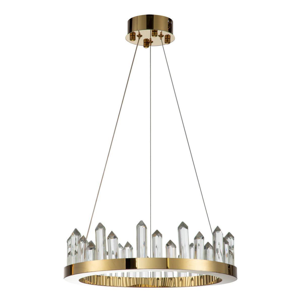 Подвесной светодиодный светильник Moderli Ingrid V9050-PL от Китайского бренда из коллекции Ingrid предназначен для установки на потолок в спальни в стиле модерн. Cветильник в форме с стальной арматурой залотого цвета и прозрачного цвета плафонами из хрусталя предназначен для освещения м2.