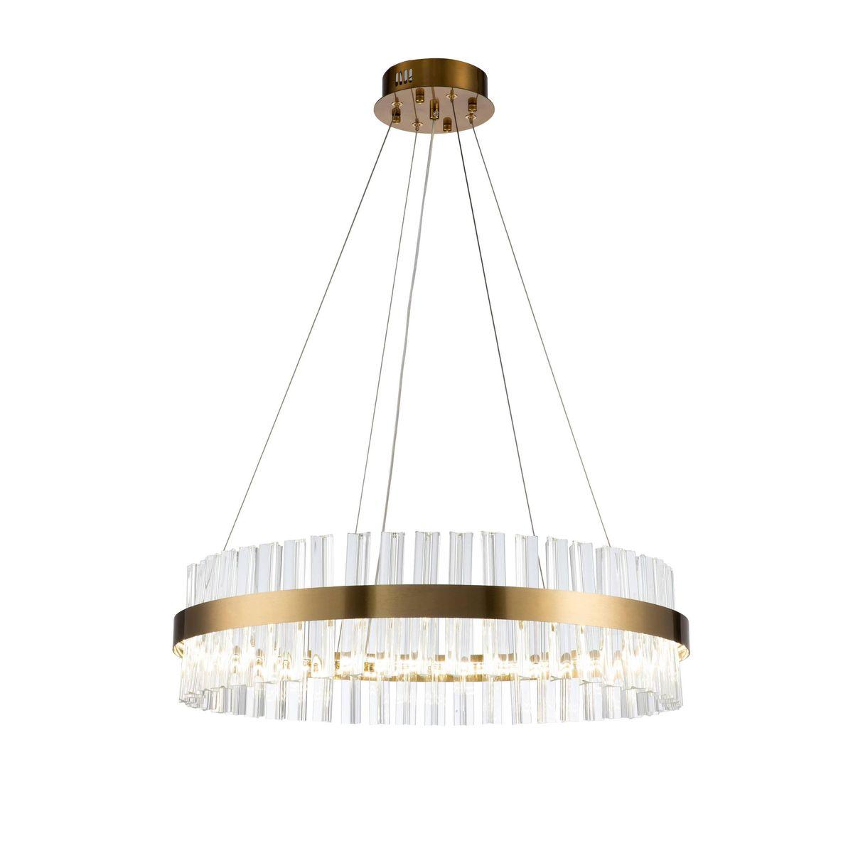 Подвесной светодиодный светильник Moderli Samanta V7030-PL от Китайского бренда из коллекции Samanta предназначен для установки на потолок в гостиной в стиле модерн. Cветильник в форме с стальной арматурой цвета латуни и прозрачного цвета плафонами из стекла предназначен для освещения м2.