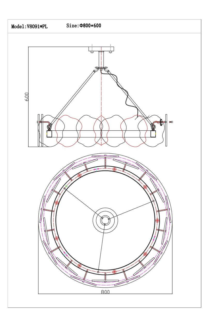 Для светильника необходима светодиодных ламп 80 W. Габариты изделия: высота – 600 мм, диаметр – 800 мм.
