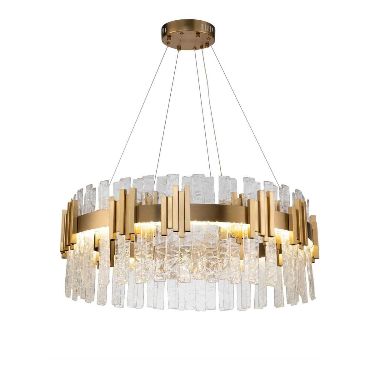 Подвесной светодиодный светильник Moderli Stasy V9010-PL от Китайского бренда из коллекции Stasy предназначен для установки на потолок в гостиной в стиле модерн. Cветильник в форме с металлической арматурой цвета латуни и прозрачного цвета плафонами из стекла предназначен для освещения м2.