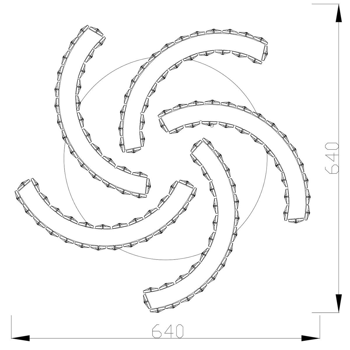 Для светильника необходима светодиодных ламп 200 W. Габариты изделия: высота – 110 мм, диаметр – 640 мм.