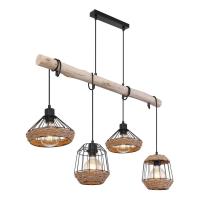 Подвесной светильник Globo Surri 15678-4H от Китайского бренда из коллекции Surri предназначен для установки на потолок в кухне в эко стиле. Cветильник в форме с металлической арматурой черного цвета и цвета дерева плафонами из дерева предназначен для освещения м2.