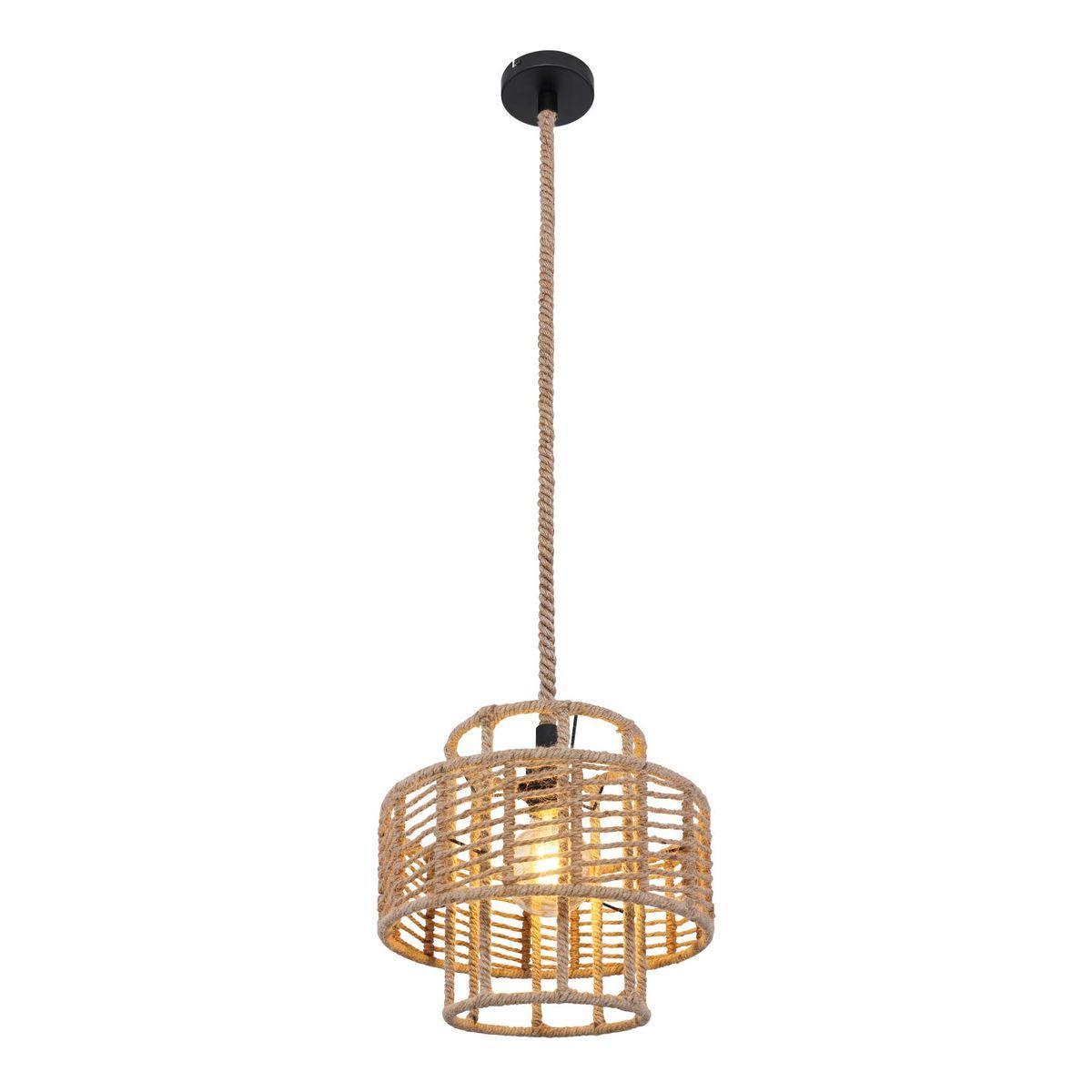 Подвесной светильник Globo Ulleu 69068H от Китайского бренда из коллекции Ulleu предназначен для установки на потолок в кухне в стиле кантри. Cветильник в форме с металлической арматурой черного цвета и бежевого цвета плафонами из ткани предназначен для освещения м2.