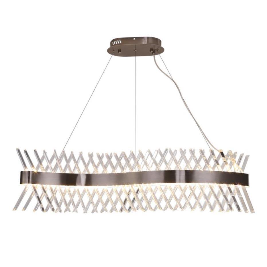 Подвесной светодиодный светильник Omnilux Strasatti OML-99913-44 от Китайского бренда из коллекции Strasatti предназначен для установки на потолок в спальни в стиле модерн. Cветильник в форме с металлической арматурой цвета никель и прозрачного цвета плафонами из хрусталя предназначен для освещения 9 м2.