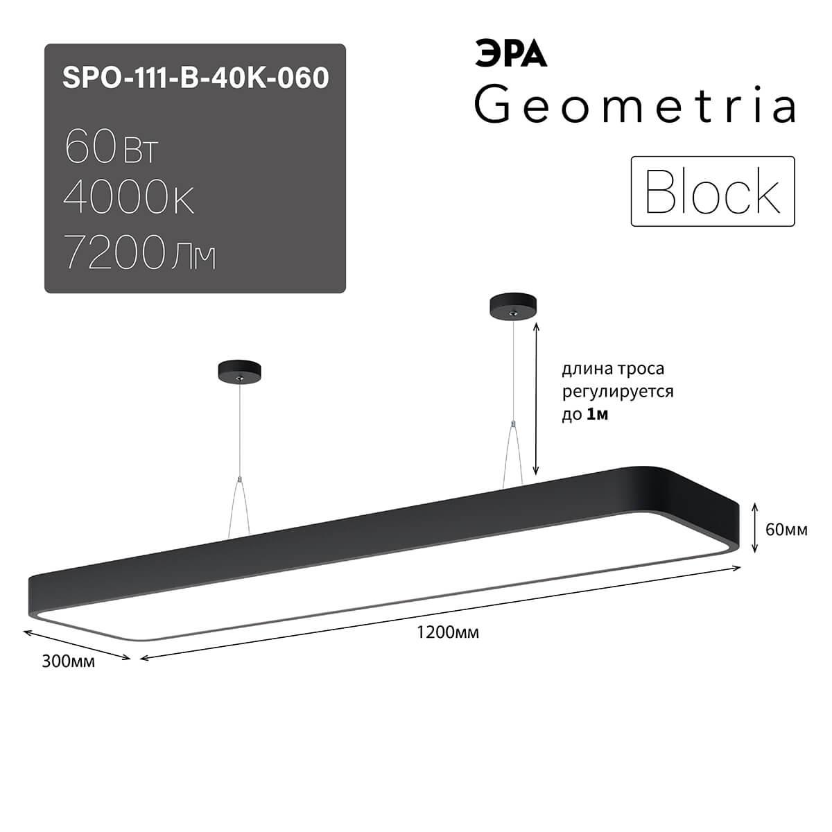 Подвесной светодиодный cветильник Geometria ЭРА Block SPO-111-B-40K-060 60Вт 4000К черный Б0050539 от Китайского бренда из коллекции Geometria предназначен для установки на потолок в стиле модерн. Cветильник в форме с арматурой черного цвета и черного цвета плафонами из предназначен для освещения 60 м2.