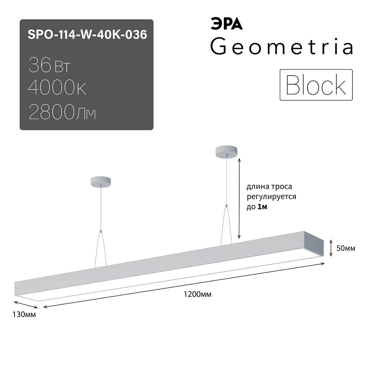 Подвесной светодиодный cветильник Geometria ЭРА Block SPO-114-W-40K-036 36Вт 4000К белый Б0050544