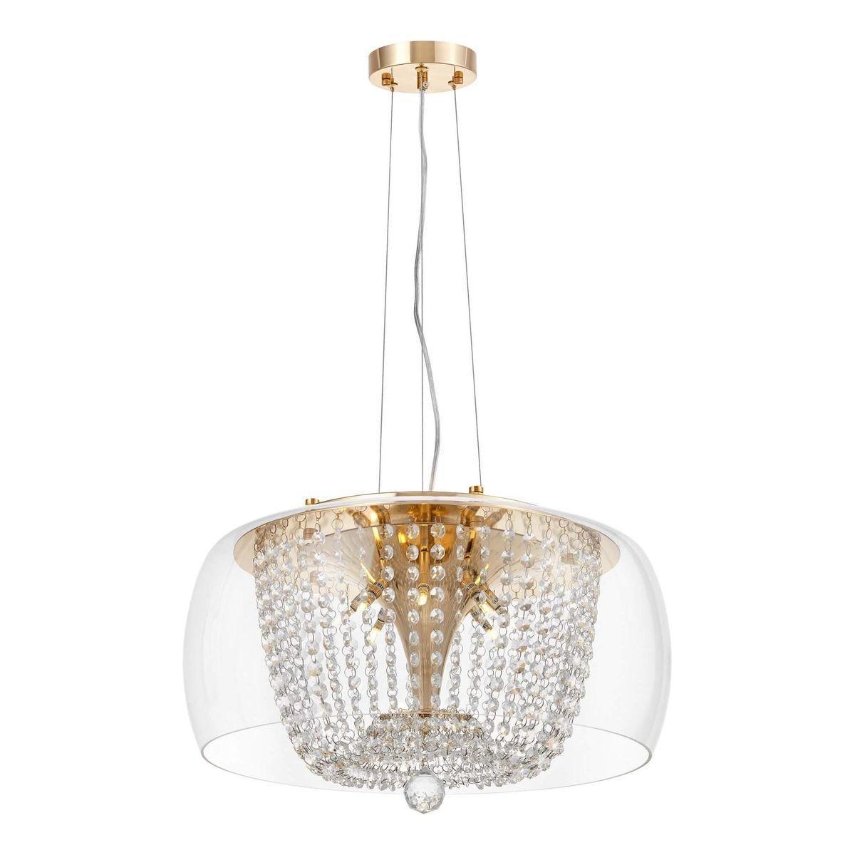 Подвесной светильник Lumina Deco Disposa LDP 7018-500 PR+F.GD от Китайского бренда из коллекции Disposa предназначен для установки на потолок в гостиной в стиле Арт-деко. Cветильник в форме с металлической арматурой залотого цвета и прозрачного цвета плафонами из стекла предназначен для освещения м2.