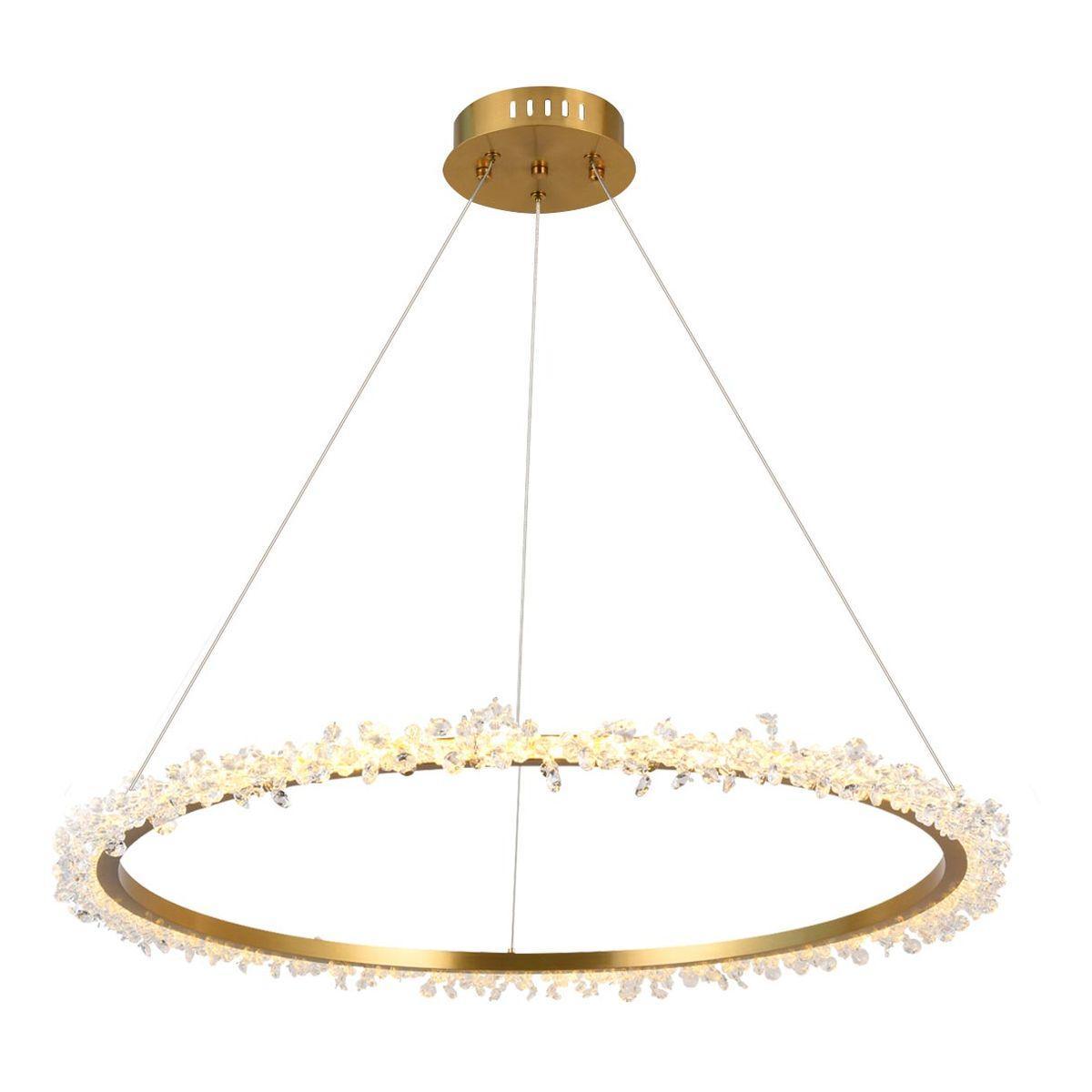 Подвесной светодиодный светильник Kink Light ЛаураЛюкс 08454-80,36 от Китайского бренда из коллекции ЛаураЛюкс предназначен для установки на потолок в гостиной в стиле модерн. Cветильник в форме с металлической арматурой цвета латуни и прозрачного цвета плафонами из стекла предназначен для освещения м2.