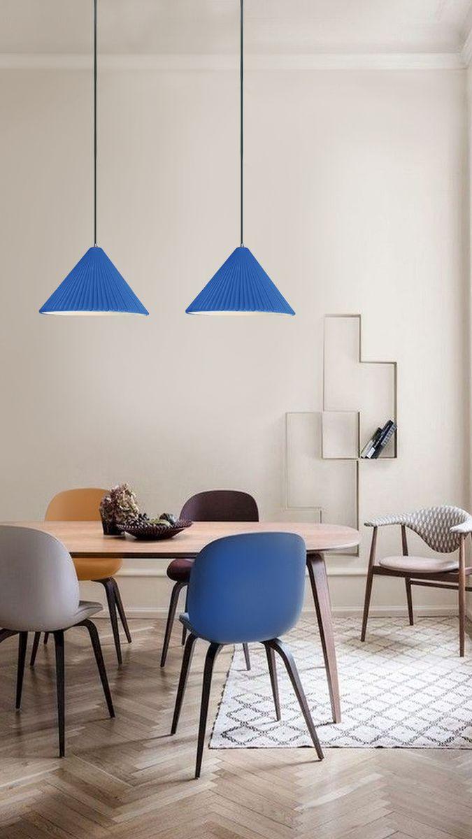 Подвесной светильник Milosh Tendence 0829PLA-1BL от Китайского бренда из коллекции 0829 предназначен для установки на потолок в кухне в скандинавском стиле. Cветильник в форме с металлической арматурой черного цвета и голобого цвета плафонами из полимера предназначен для освещения 3 м2.