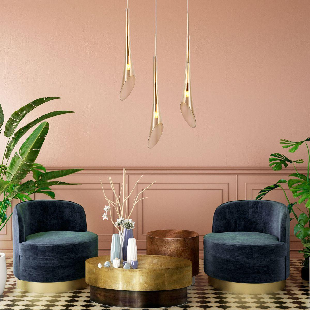 Подвесной светильник Eurosvet Folio 50224/1 янтарный от Китайского бренда из коллекции Folio предназначен для установки на потолок в спальни в стиле Арт-деко. Cветильник в форме с металлической арматурой залотого цвета и янтарного цвета плафонами из стекла предназначен для освещения 1 м2.