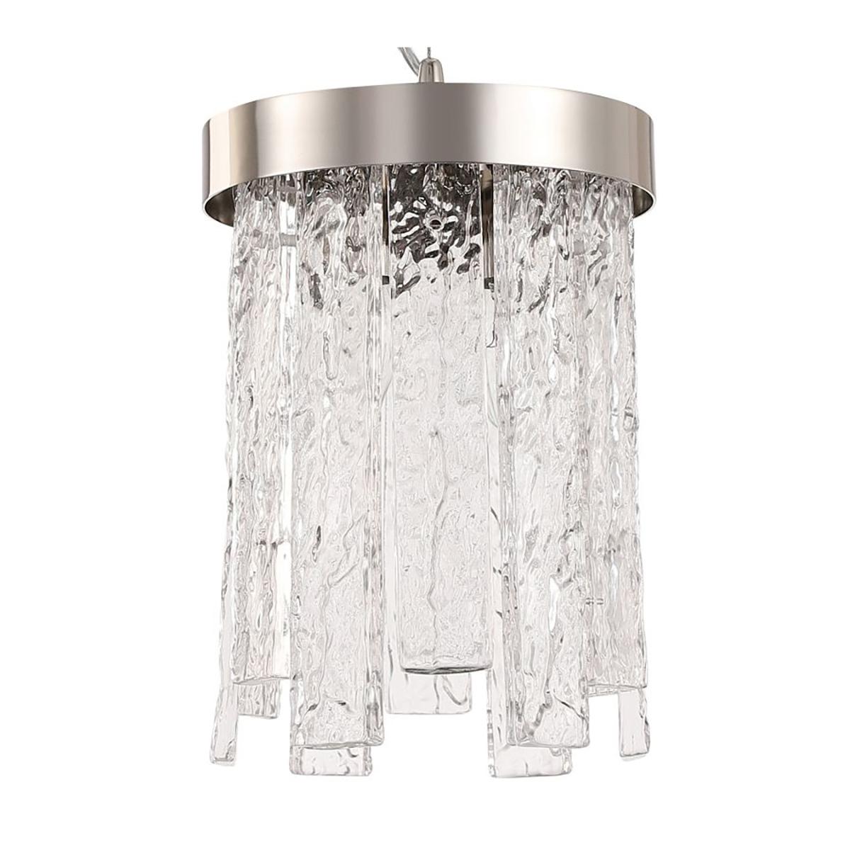 Подвесной светильник Stilfort Frostyle 2155/11/02P от Китайского бренда из коллекции Frostyle предназначен для установки на потолок в гостиной в стиле модерн. Cветильник в форме с металлической арматурой цвета никель и прозрачного цвета плафонами из стекла предназначен для освещения м2.