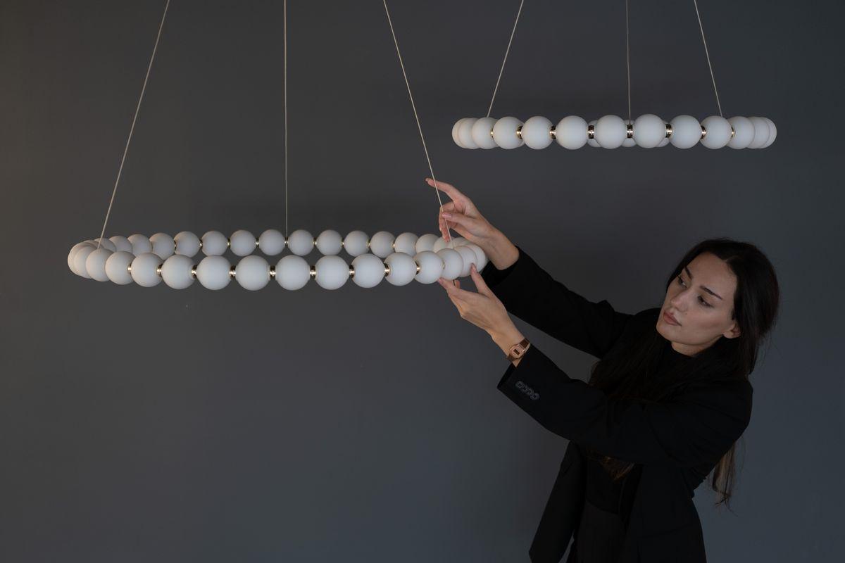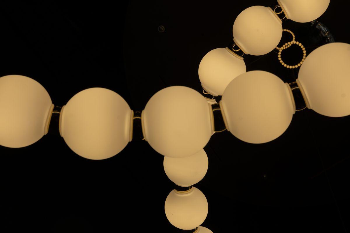 Для светильника необходима светодиодных ламп 60 W. Габариты изделия: высота – 1500 мм, диаметр – 640 мм.
