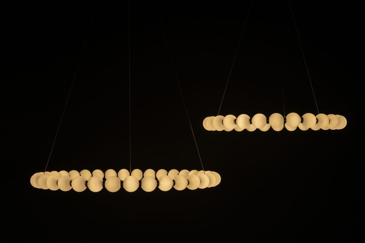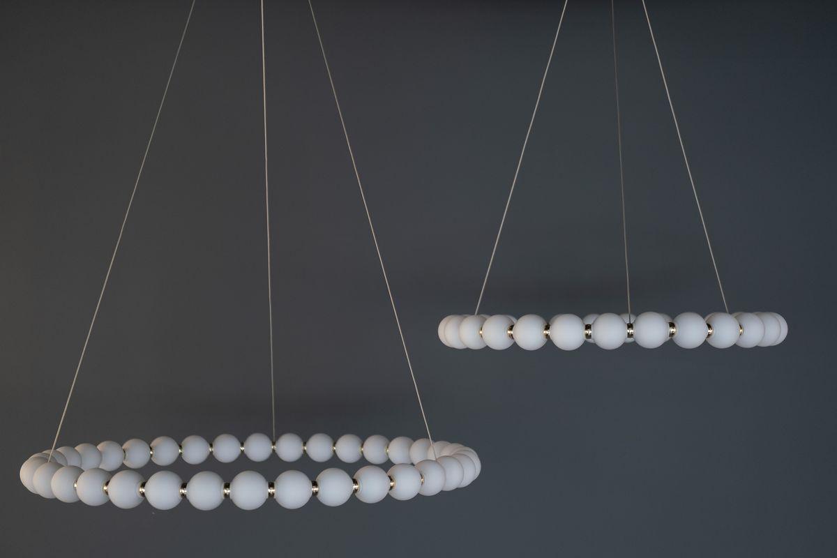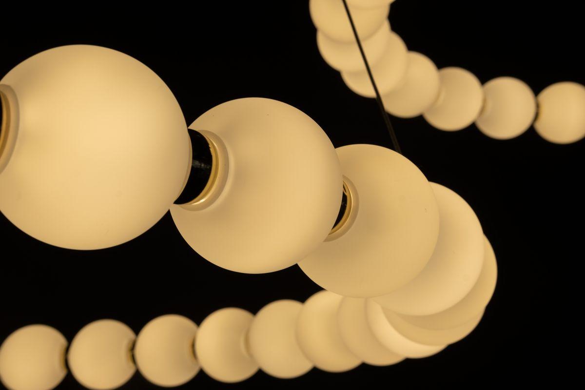 Для светильника необходима светодиодных ламп 81 W. Габариты изделия: высота – 1500 мм, диаметр – 830 мм.