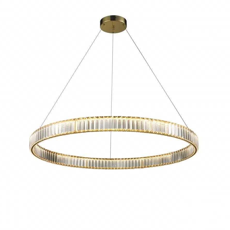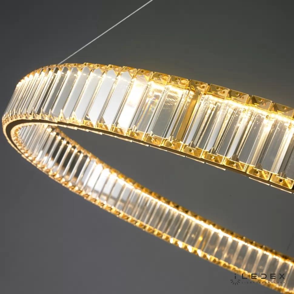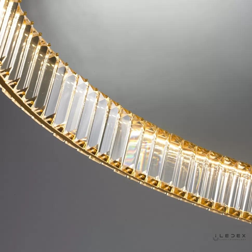 Подвесной светодиодный светильник iLedex Woodstock 10920P/1-38W-3000K-D1000 GL-CL от Китайского бренда из коллекции Woodstock предназначен для установки на потолок в гостиной в стиле модерн. Cветильник в форме с металлической арматурой залотого цвета и прозрачного цвета плафонами из хрусталя предназначен для освещения м2.