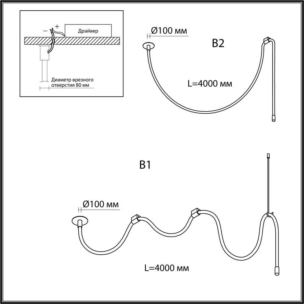 Для светильника необходима 1 светодиодная лампа 40 W. Габариты изделия: высота – 4000 мм, диаметр – мм.