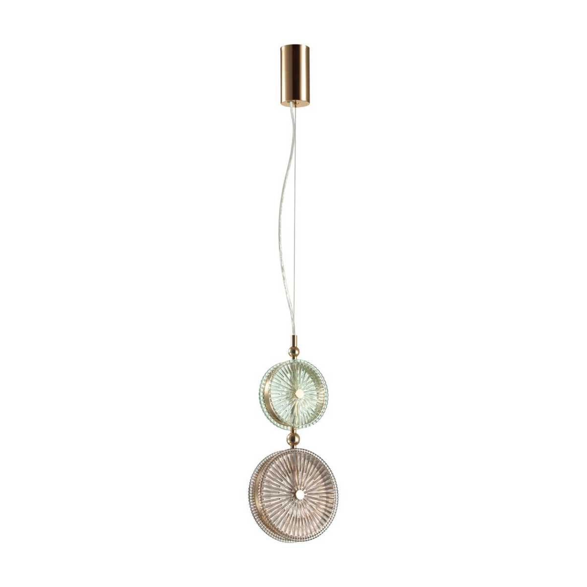 Подвесной светодиодный светильник Odeon Light Exclusive Caramella 5412/13LD от Китайского бренда из коллекции Caramella предназначен для установки на потолок в кухне в ретро стиле. Cветильник в форме с металлической арматурой залотого цвета и зеленого цвета плафонами из стекла предназначен для освещения 3 м2.