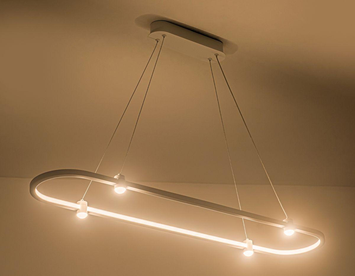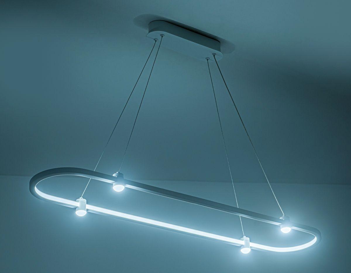 Подвесной светодиодный светильник Ambrella light Comfort Line FL5588 от бренда из коллекции Comfort Line предназначен для установки на потолок в гостиной в хай-тек стиле. Cветильник в форме с металлической арматурой белого цвета и белого цвета плафонами из металла предназначен для освещения 22 м2.