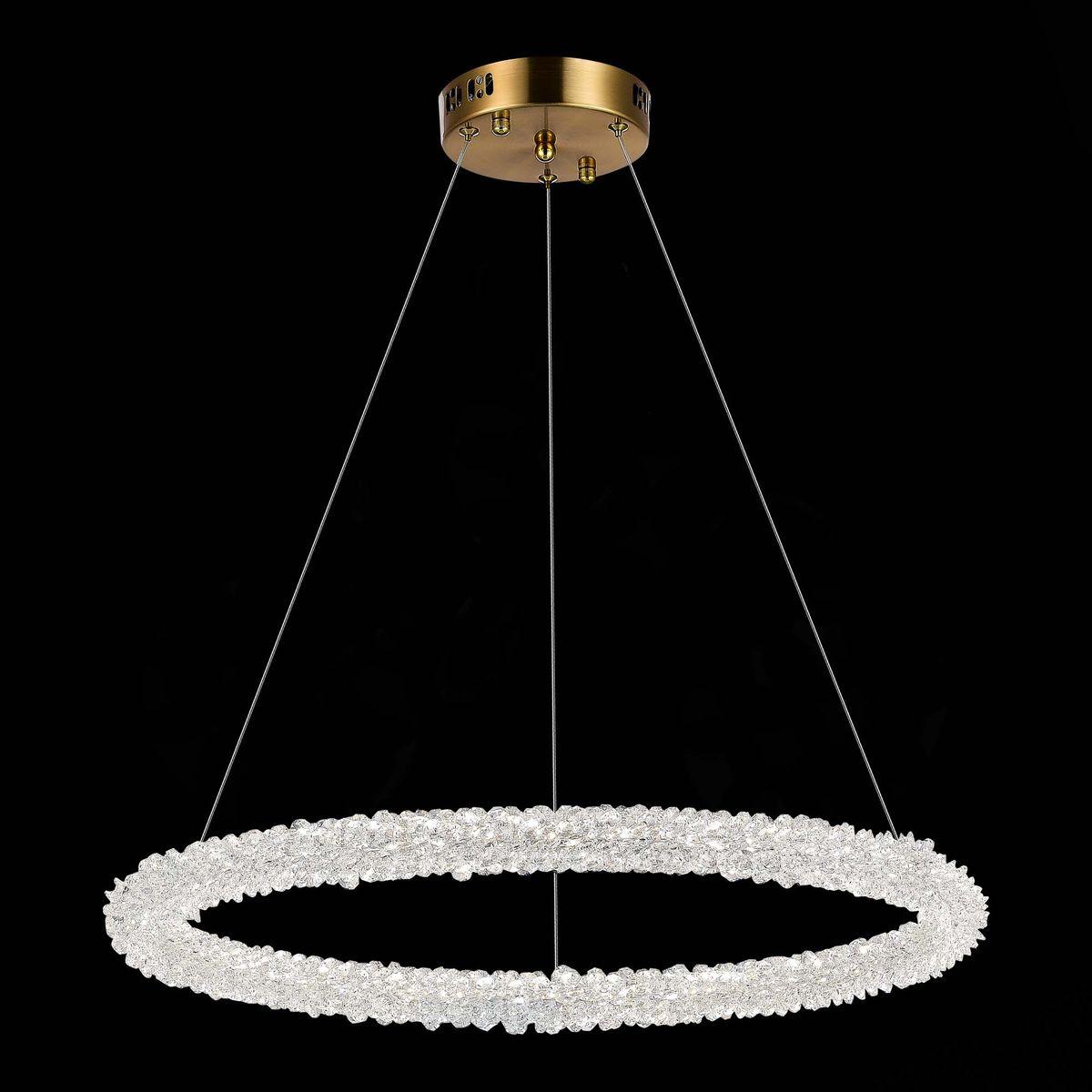 Подвесной светодиодный светильник ST Luce Avana SL6110.213.01 от Китайского бренда из коллекции Avana предназначен для установки на потолок в спальни в стиле модерн. Cветильник в форме с металлической арматурой залотого цвета и прозрачного цвета плафонами из стекла предназначен для освещения 13 м2.