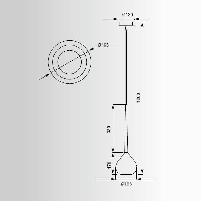 Для светильника необходима 1 лампа накаливания 40 W. Габариты изделия: высота – 1200 мм, диаметр – 163 мм.