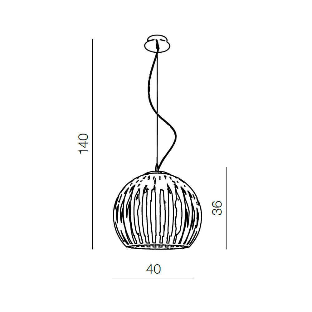 Для светильника необходима 1 лампа накаливания 40 W. Габариты изделия: высота – 1400 мм, диаметр – 400 мм.