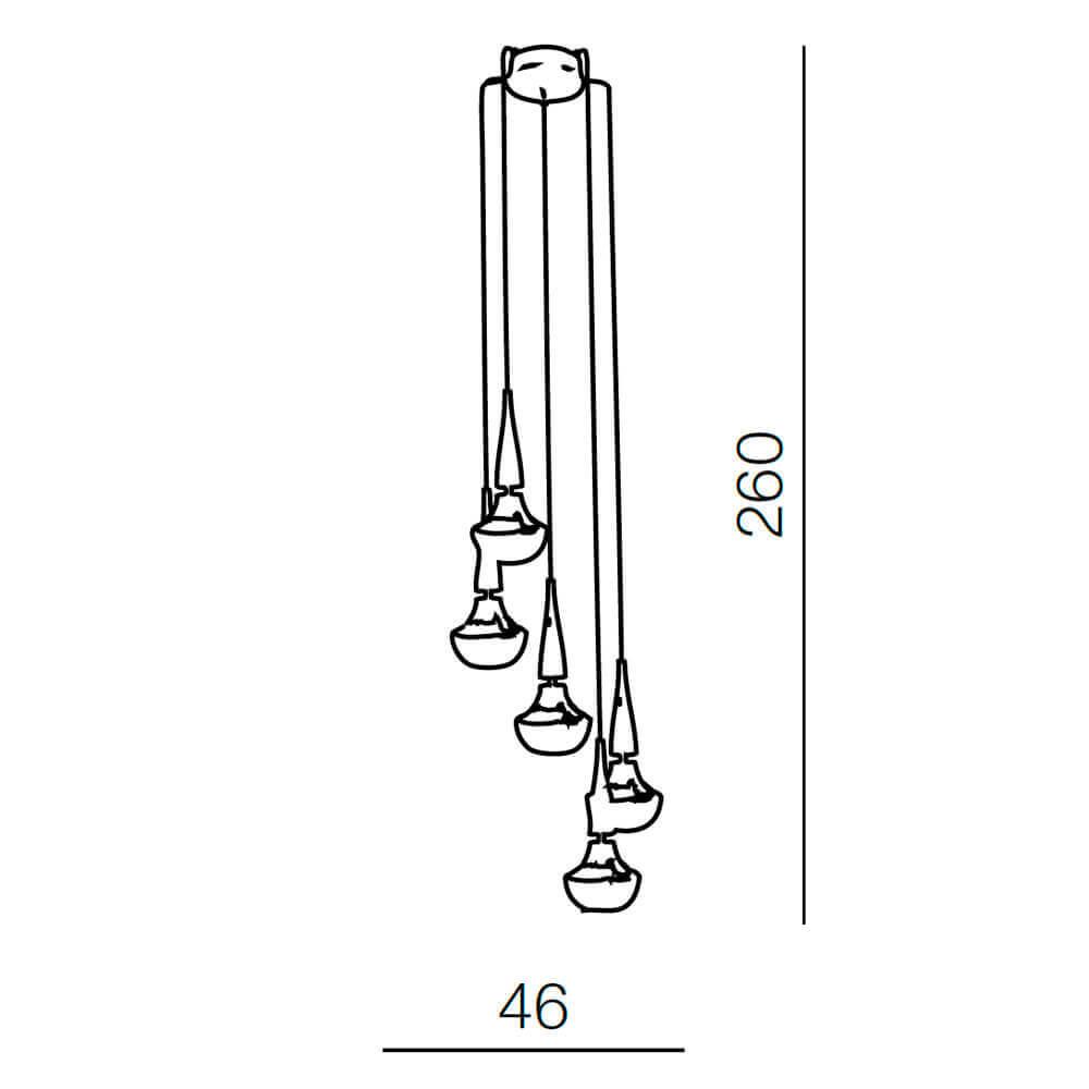 Для светильника необходима 5 ламп накаливания 40 W. Габариты изделия: высота – 2600 мм, диаметр – мм.