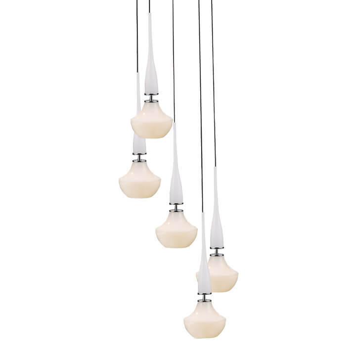 Подвесной светильник Azzardo Tasos 5 AZ0261 от Польского бренда из коллекции Tasos 5 предназначен для установки на потолок в стиле Арт-деко. Cветильник в форме с металлической арматурой цвет хрома и белого цвета плафонами из стекла предназначен для освещения м2.