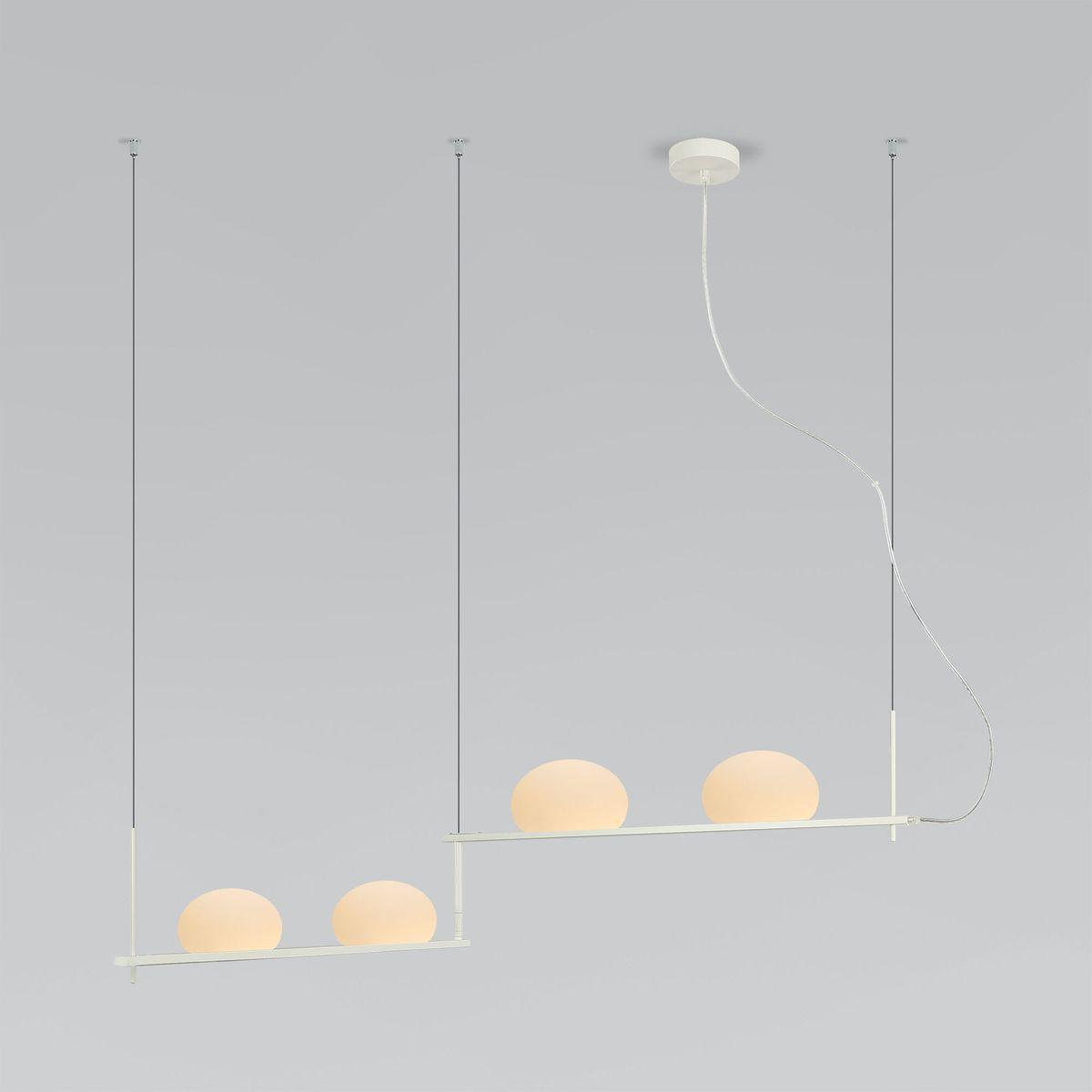 Подвесной светильник Eurosvet Stair 70145/4 белый от Китайского бренда из коллекции Stair предназначен для установки на потолок в гостиной в современном стиле. Cветильник в форме с металлической арматурой белого цвета и белого цвета плафонами из стекла предназначен для освещения 5 м2.
