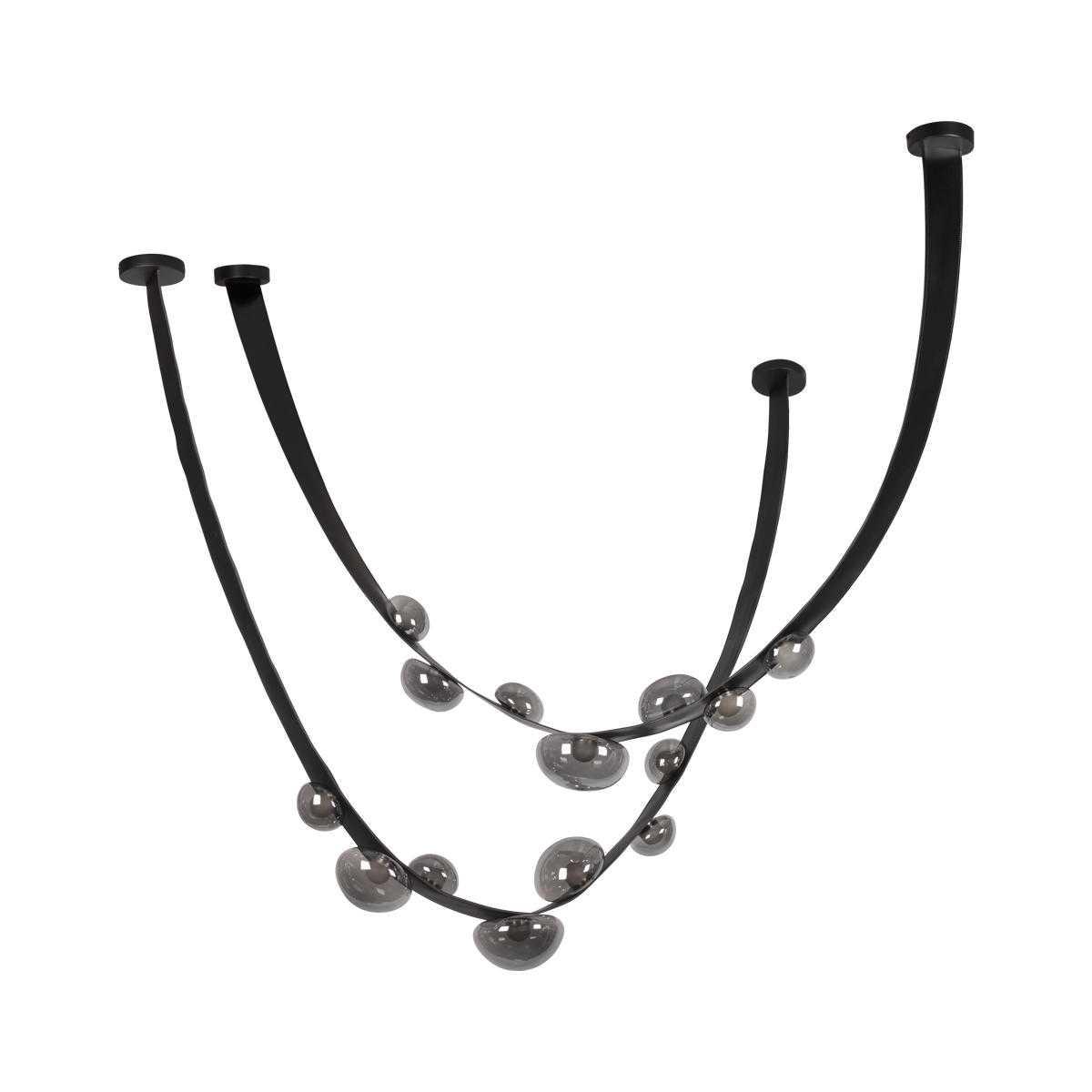 Подвесной светильник LOFT IT Belt 10188/2500 от Китайского бренда из коллекции Belt предназначен для установки на потолок в гостиной в стиле модерн. Cветильник в форме с металлической арматурой черного цвета и дымчатого цвета плафонами из стекла предназначен для освещения м2.
