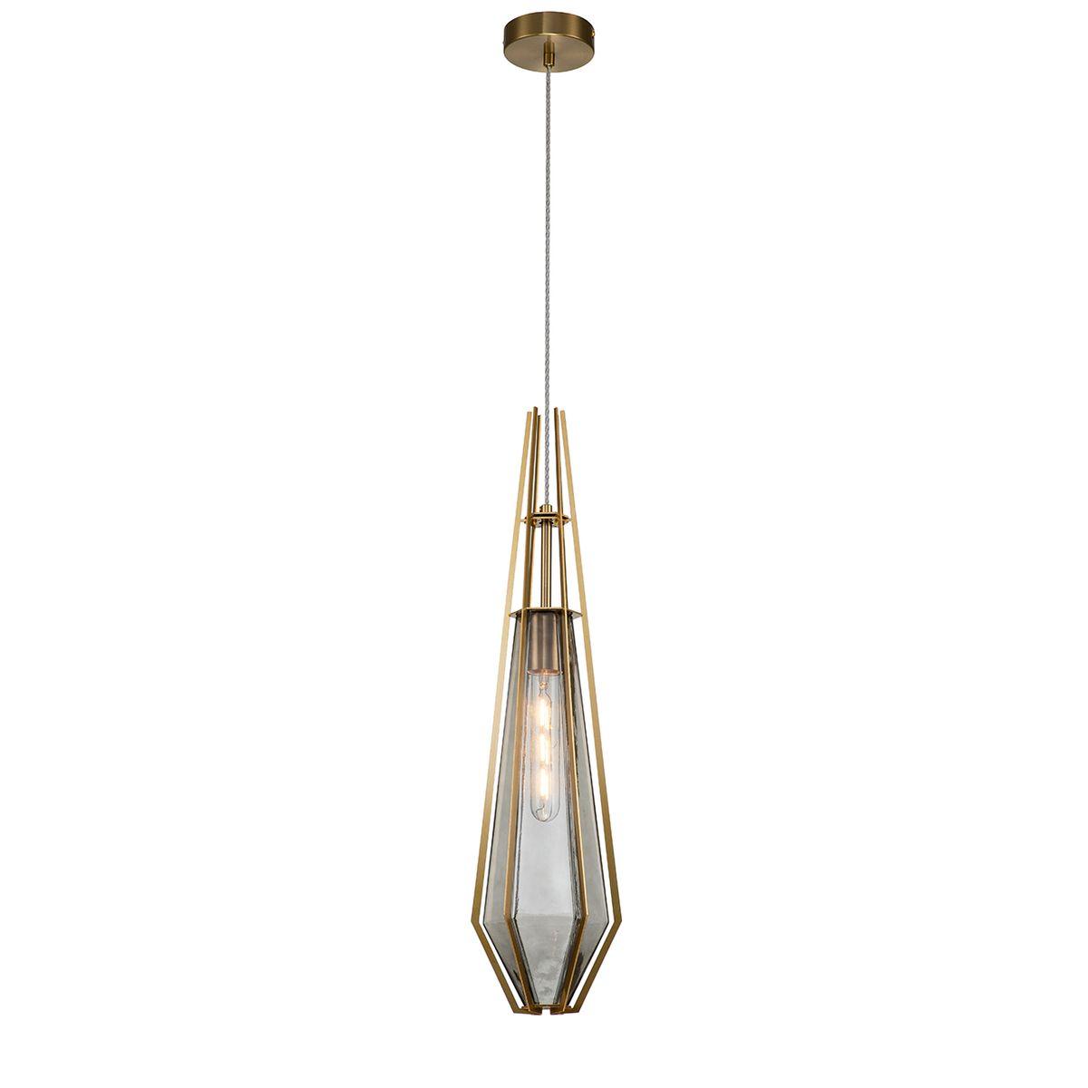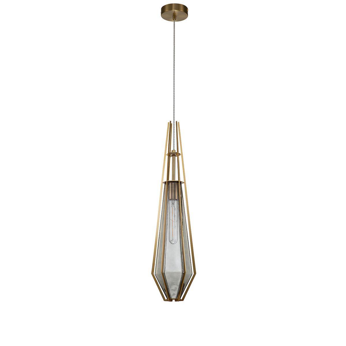 Подвесной светильник Indigo Vista 11012/A/1P Smoke V000316 от Китайского бренда из коллекции Vista предназначен для установки на потолок в спальни в скандинавском стиле. Cветильник в форме с металлической арматурой залотого цвета и дымчатого цвета плафонами из стекла предназначен для освещения 3 м2.