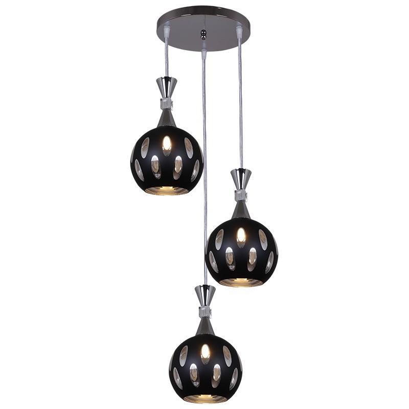 Подвесной светильник Reluce 03410-0.4-03 BK от Китайского бренда из коллекции предназначен для установки на потолок в кафе и ресторанах в стиле модерн. Cветильник в форме с металлической арматурой цвет хрома и черного цвета плафонами из стекла предназначен для освещения 24 м2.