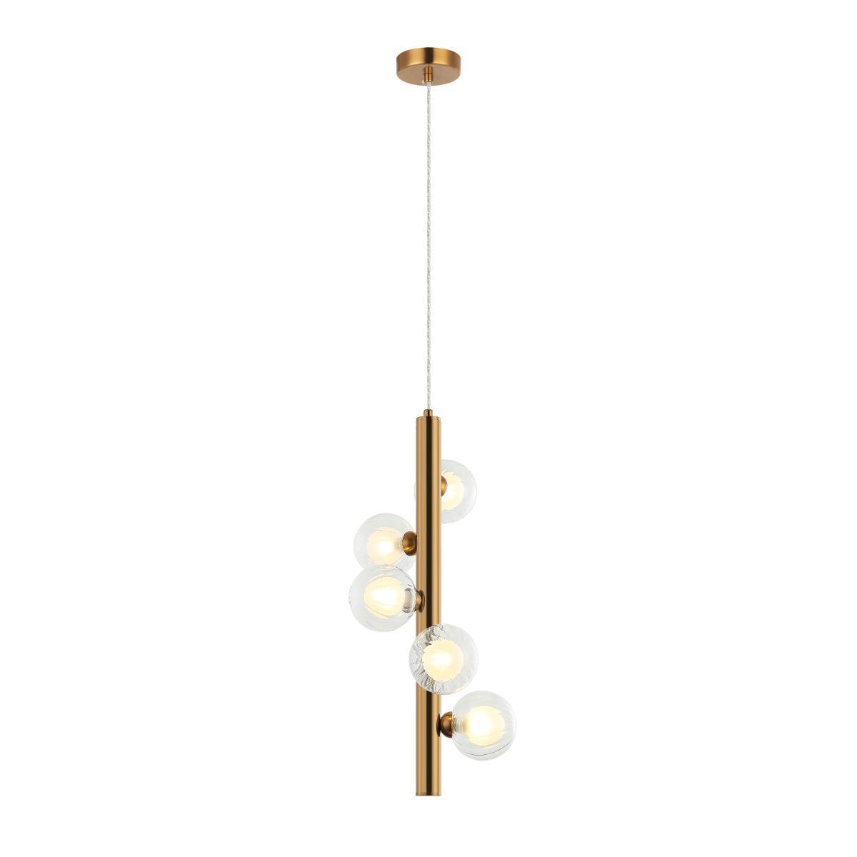 Подвесной светильник Stilfort Shardin 2165/05/05P от Китайского бренда из коллекции Shardin предназначен для установки на потолок в спальни в стиле модерн. Cветильник в форме с металлической арматурой бронзового цвета и прозрачного цвета плафонами из стекла предназначен для освещения 13 м2.