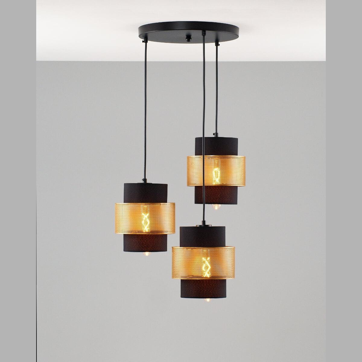 Подвесной светильник Moderli Gela V10491-3P от Китайского бренда из коллекции Gela предназначен для установки на потолок в кухне в стиле модерн. Cветильник в форме с металлической арматурой черного цвета и черного цвета плафонами из ткани предназначен для освещения 6 м2.