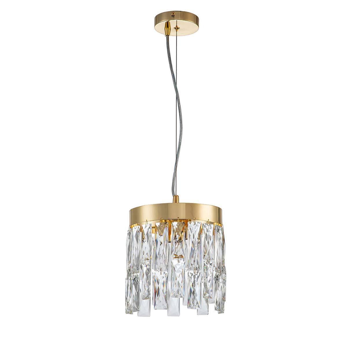 Подвесной светильник Indigo ANNA V000384 от Китайского бренда из коллекции ANNA предназначен для установки на потолок в классиком стиле. Cветильник в форме с металлической арматурой залотого цвета и прозрачного цвета плафонами из хрусталя предназначен для освещения м2.