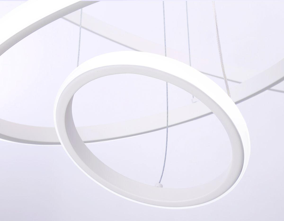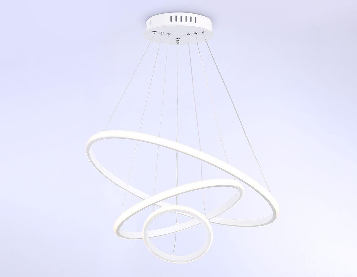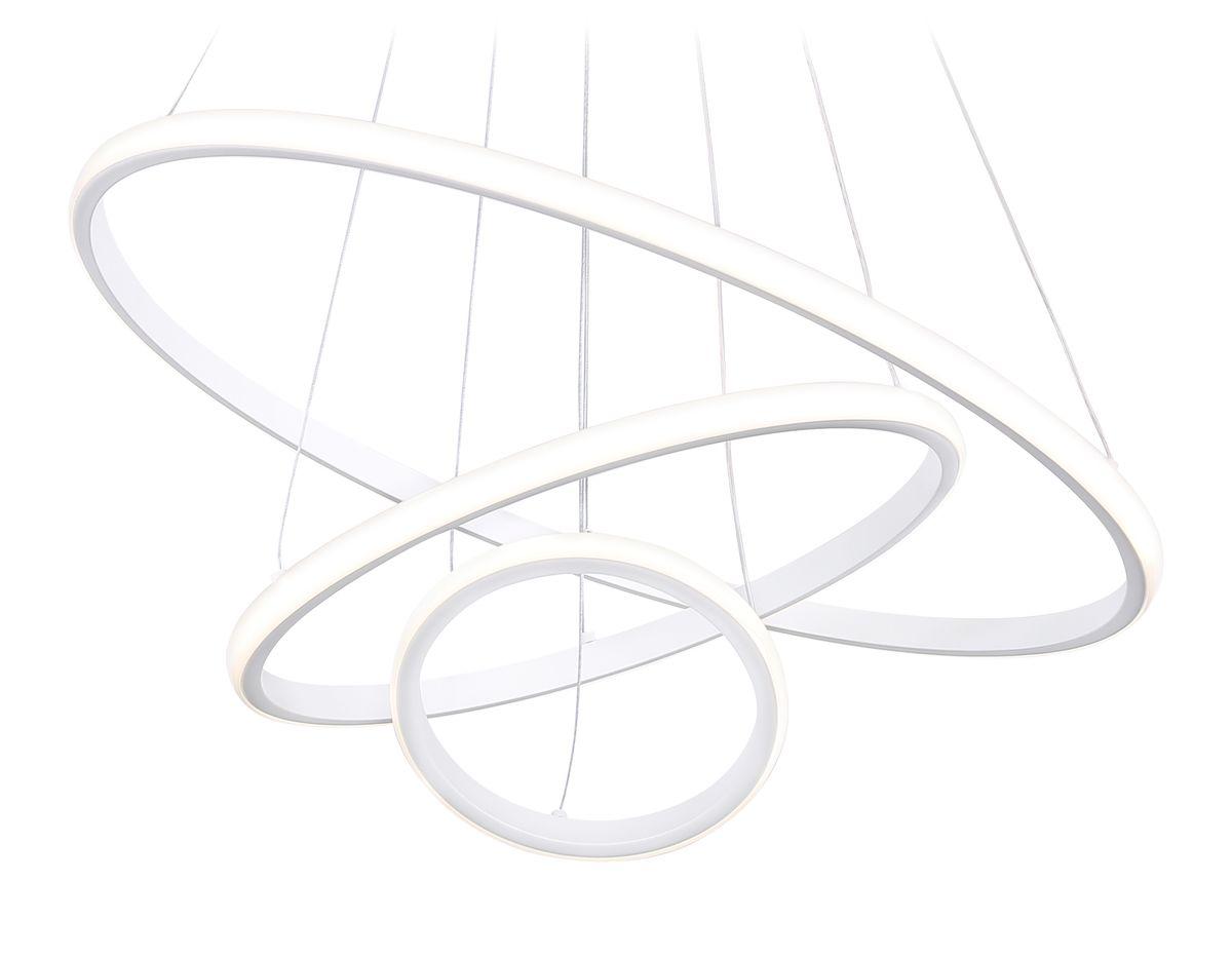 Подвесной светодиодный светильник Ambrella light Comfort Line FL40818 от бренда из коллекции Comfort Line предназначен для установки на потолок в гостиной в хай-тек стиле. Cветильник в форме с металлической арматурой белого цвета и белого цвета плафонами из пластика предназначен для освещения 20 м2.