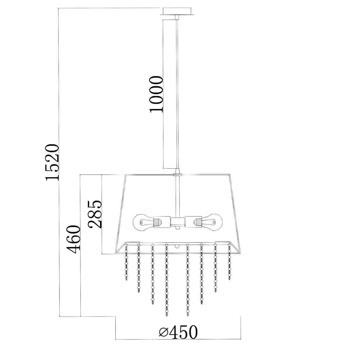 Для светильника необходима 3 лампы накаливания 60 W. Габариты изделия: высота – 1520 мм, диаметр – мм.