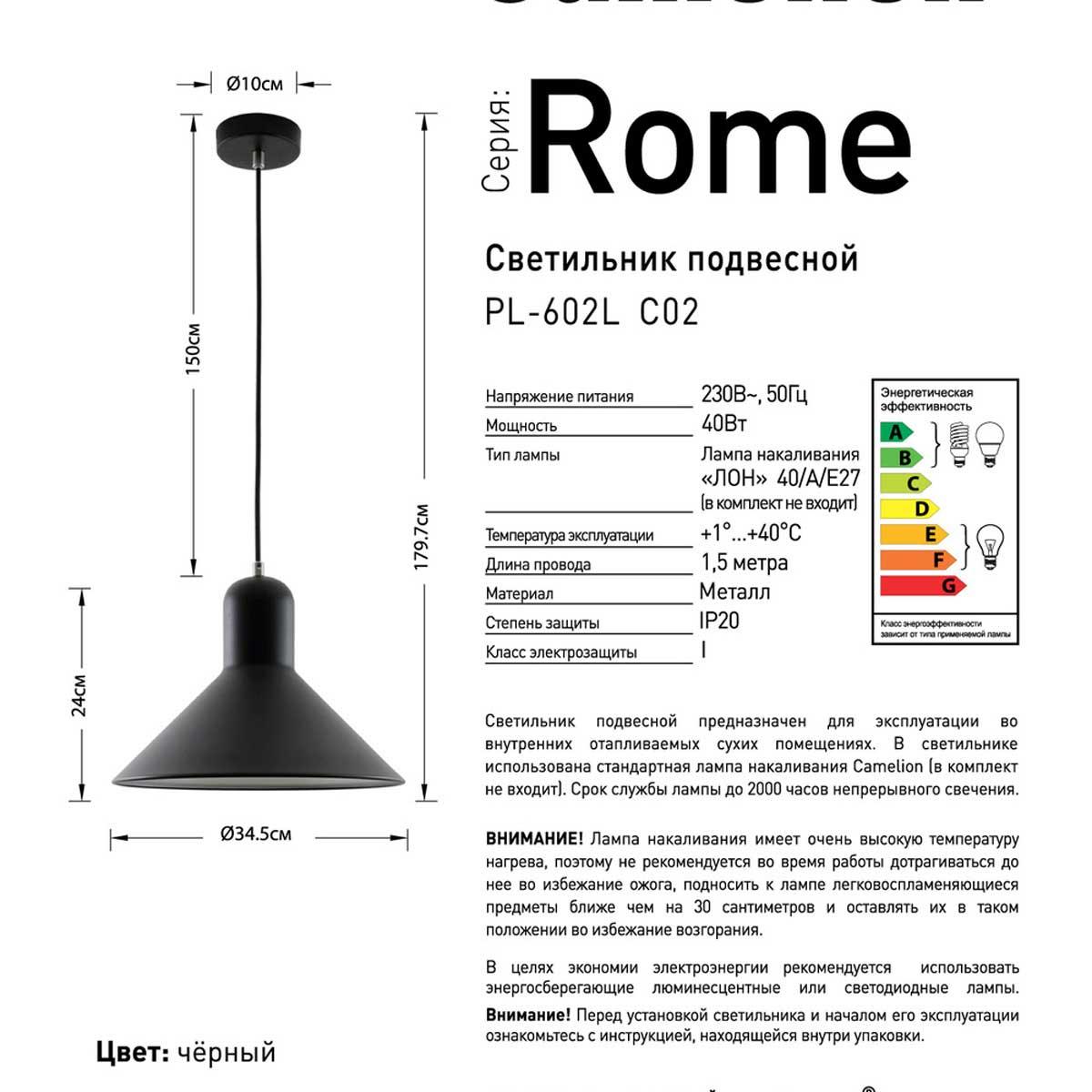Подвесной светильник Camelion PL-602L C02 14557 от Китайского бренда из коллекции предназначен для установки на потолок в стиле модерн. Cветильник в форме с металлической арматурой черного цвета и черного цвета плафонами из металла предназначен для освещения м2.