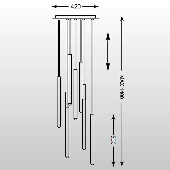 Для светильника необходима светодиодных ламп 5 W. Габариты изделия: высота – 1400 мм, диаметр – 420 мм.